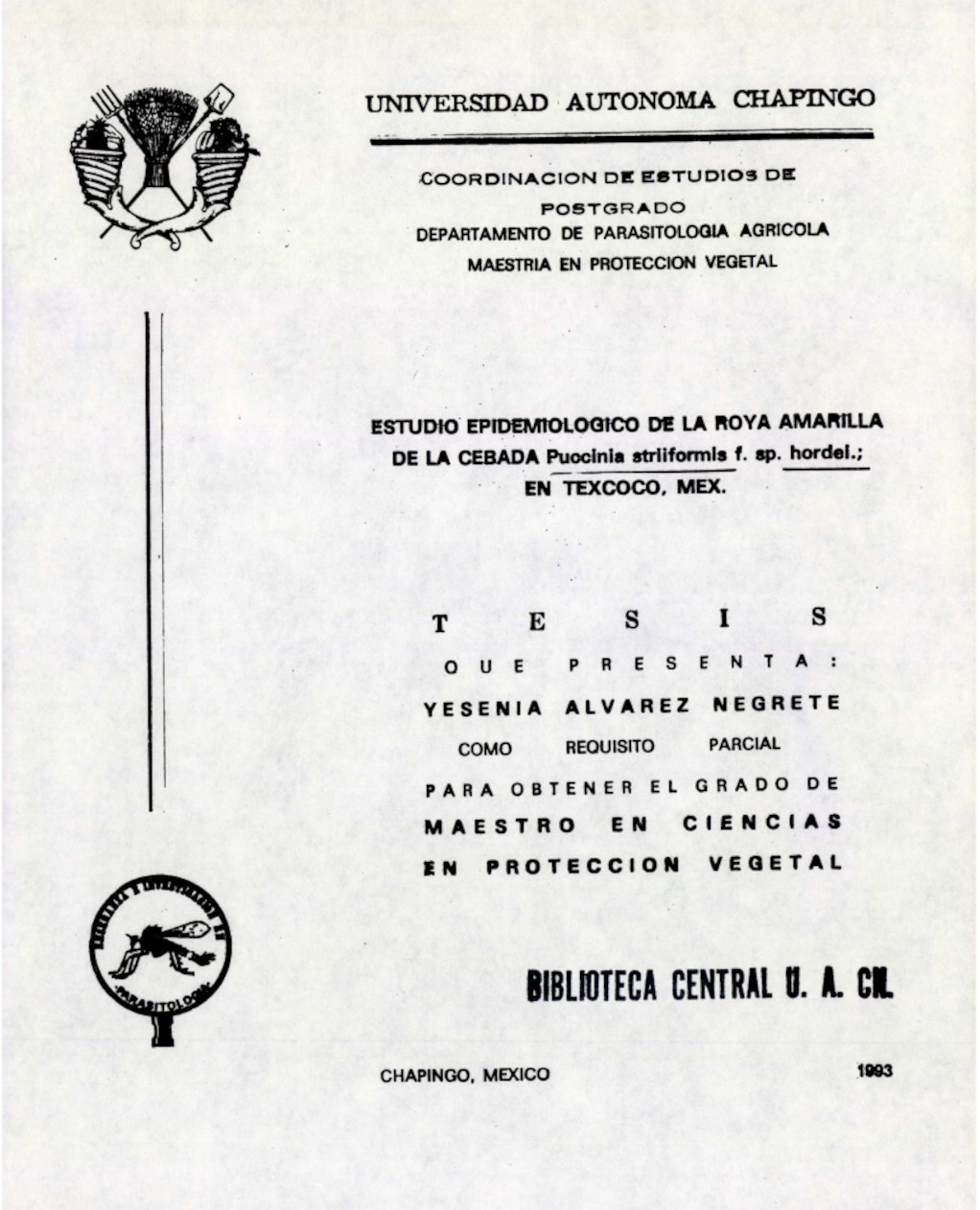 Estudio epidemiológico de la roya amarilla de la cebada Puocinia strilformis f. sp. hordel.; en Texcoco, Mex.