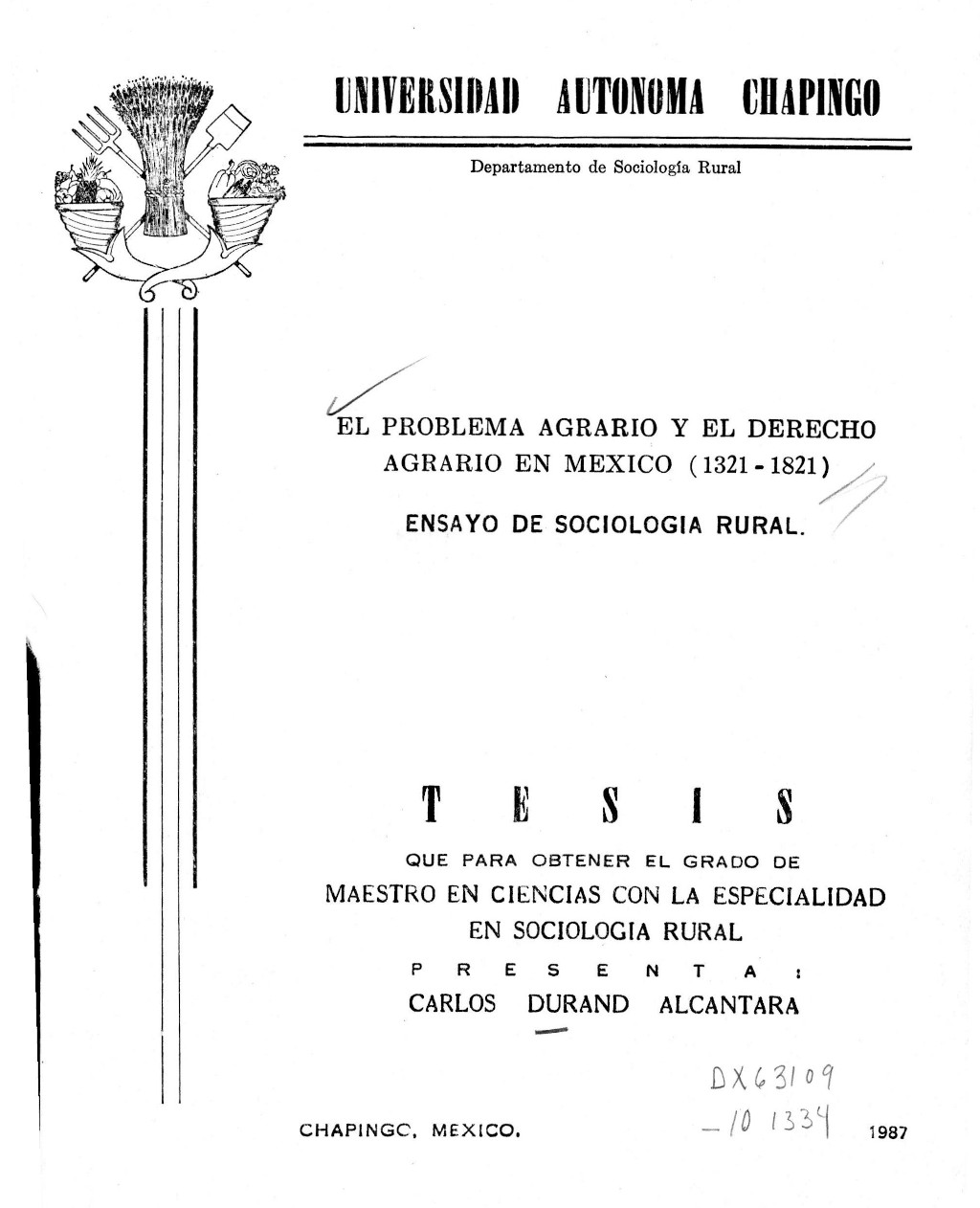 Tesis (Maestría en Ciencias en Sociología Rural)