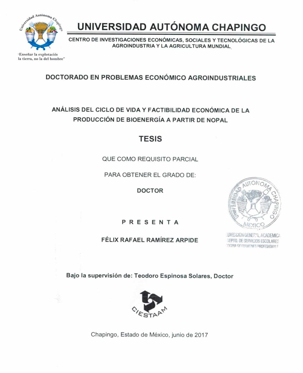 Análisis del ciclo de vida y factibilidad económica de la producción de bioenergía a partir de nopal
