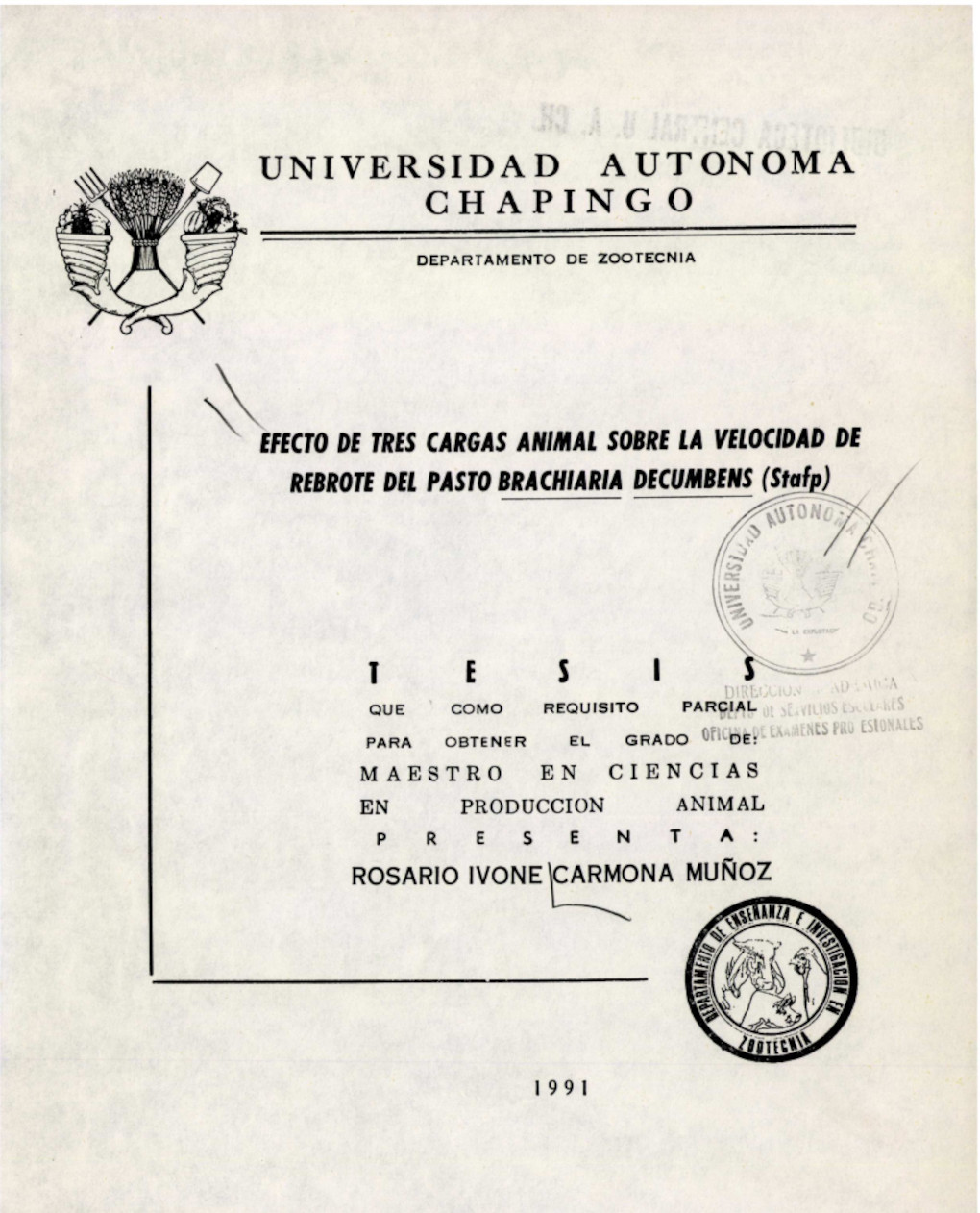 Efecto de tres cargas animal sobre la velocidad de rebrote del pasto Brachiaria decumbens (Stafp)