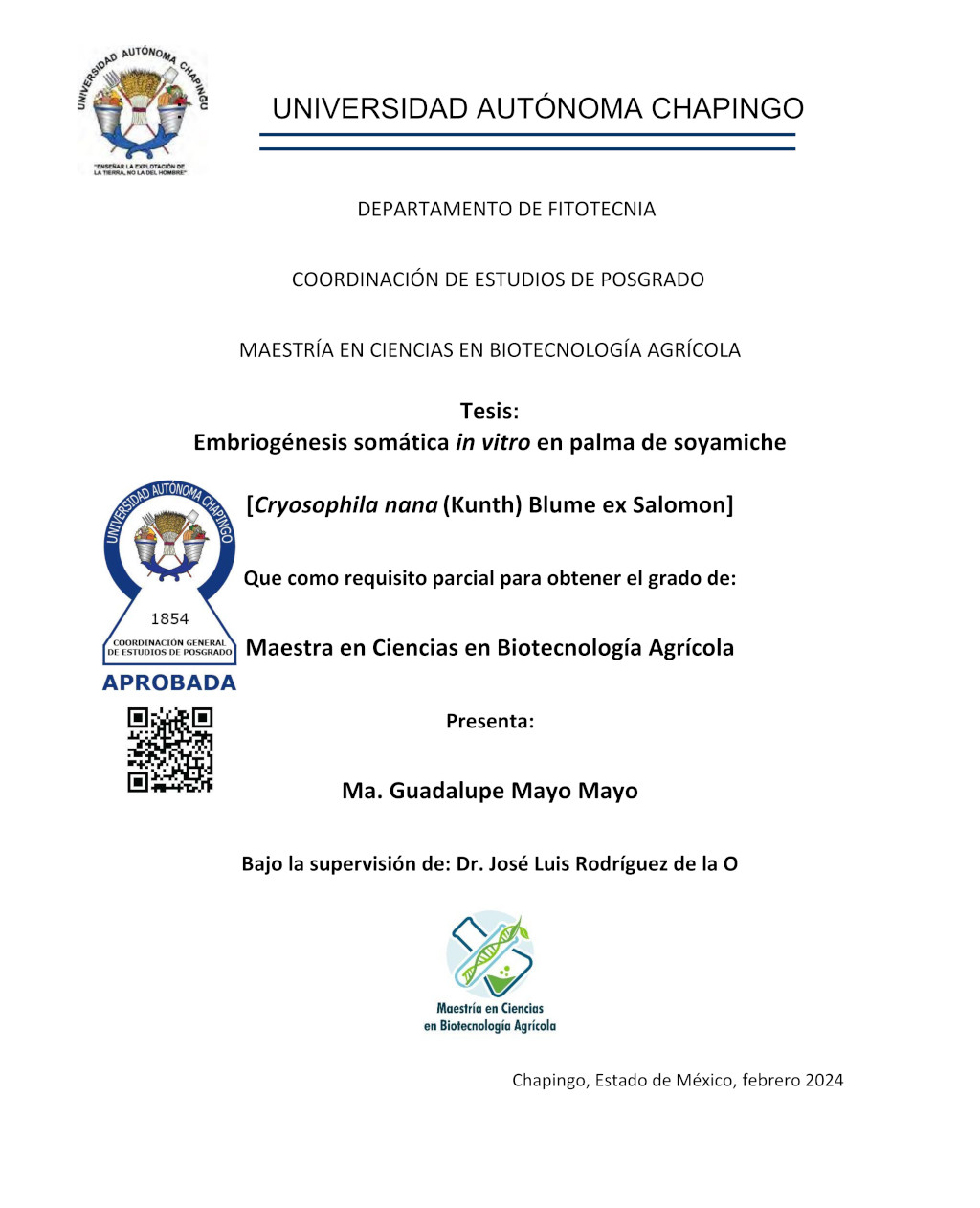 Tesis (Maestría en Ciencias en Biotecnología Agrícola)