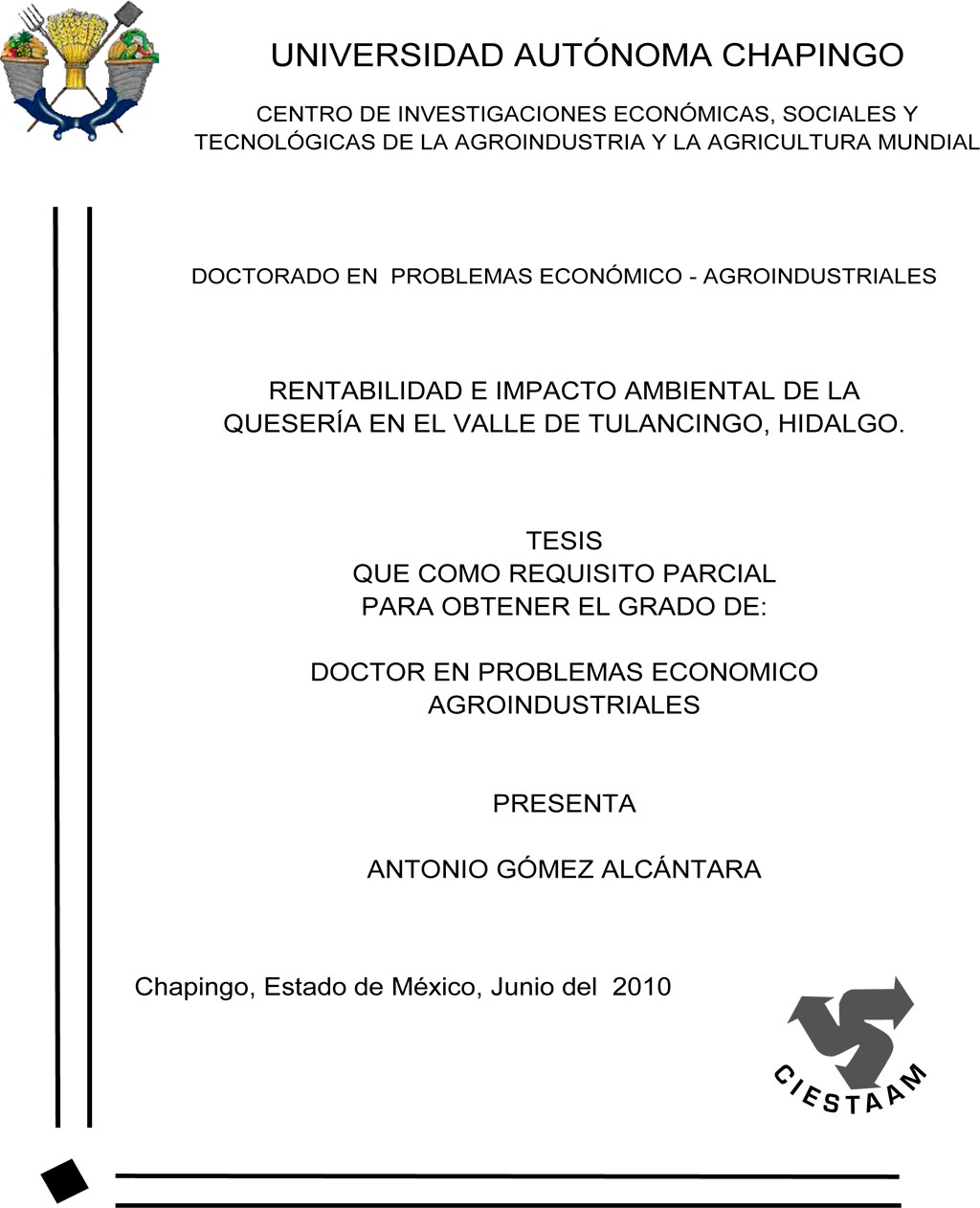 Tesis (Doctorado en Problemas Económico Agroindustriales)