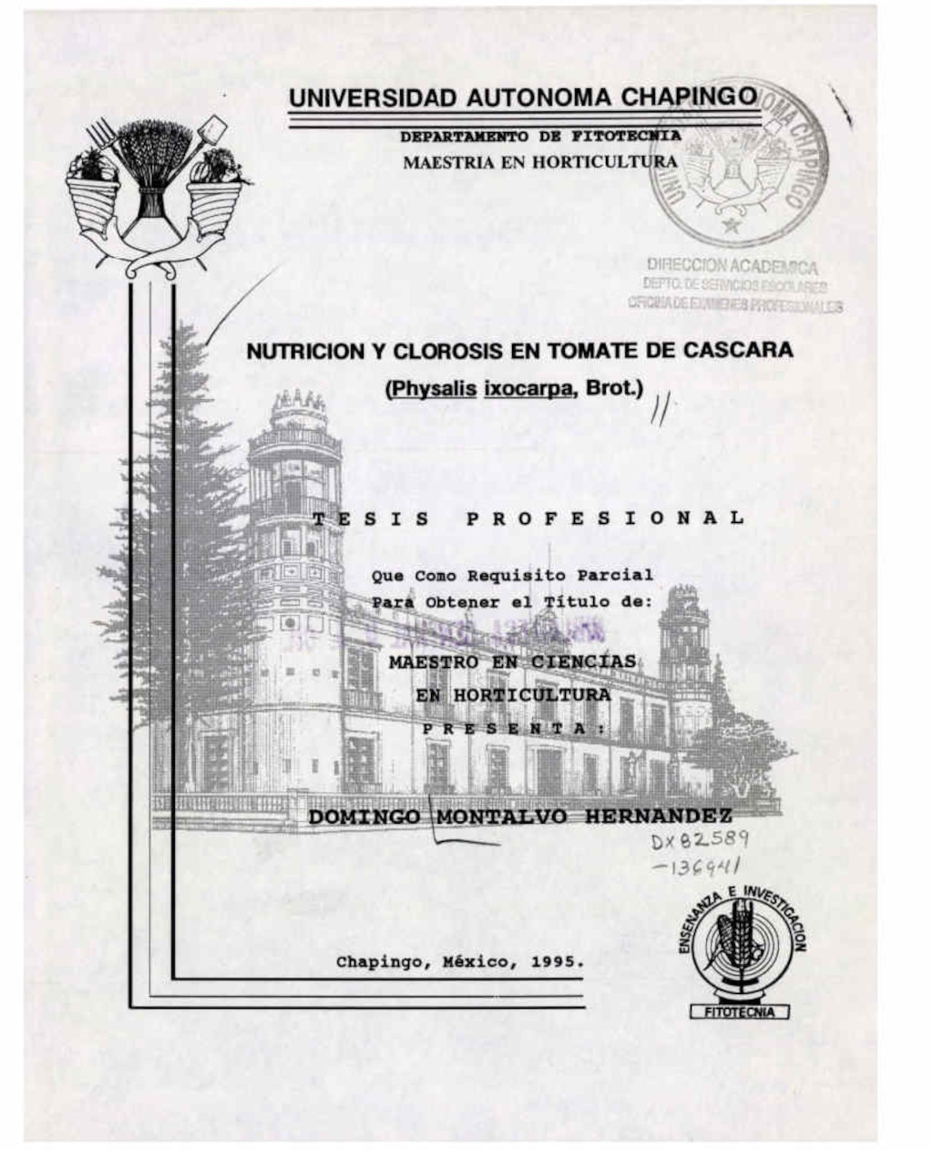Nutrición y clorosis en tomate de cáscara (Physalis ixocarpa, Brot.)