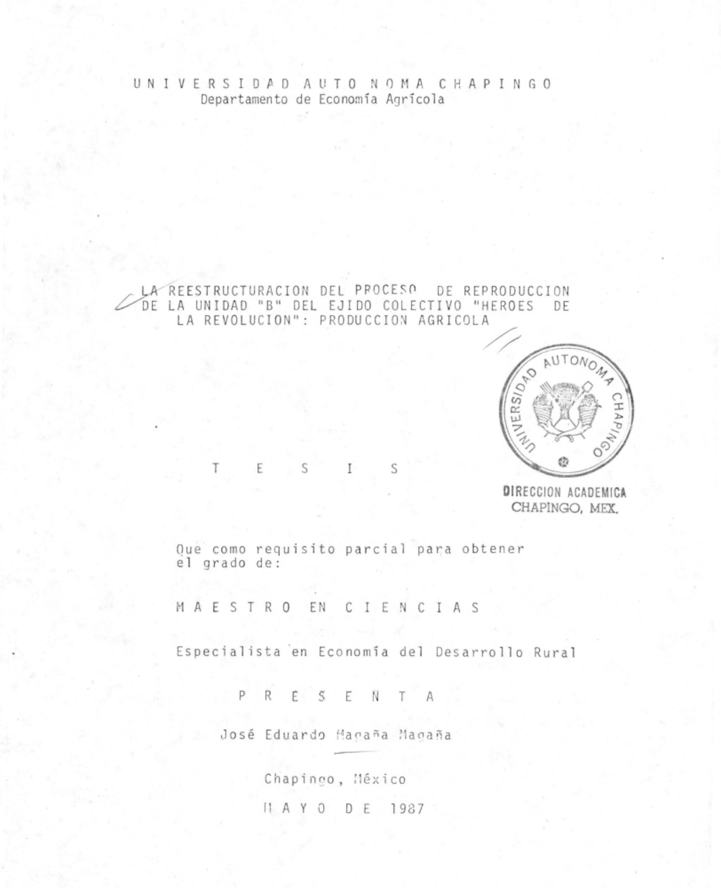 La reestructuración del proceso de reproducción de la unidad “B” del ejido colectivo “Héroes de la Revolución": producción agrícola