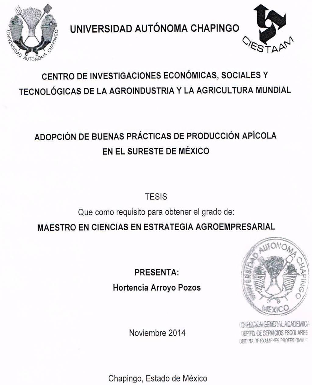 Tesis (Maestría en Ciencias en Estrategia Agroempresarial)