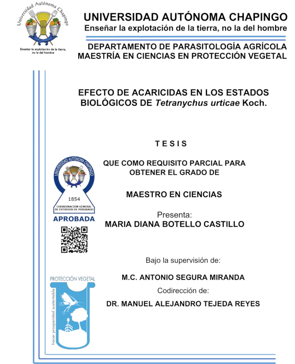 Tesis (Maestría en Ciencias en Protección Vegetal)
