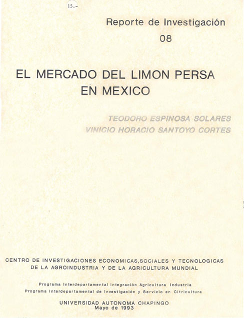 Los frutales tropicales se consideran uno de los productos donde México tendría amplias posibilidades de ser competitivo en caso de firmarse un tratado de libre comercio. Dentro de estos, el limón persa es un cultivo que desde ahora ha logrado obtener una posición importante en el mercado norteamericano. Las expectativas parecen entonces bastante halagadoras, sin embargo, antes de hacer cuantiosas inversiones para el establecimiento de huertos y empaques, es necesario que se analicen las perspectivas reales de mercado que existan, la calidad y la presentación que exige el consumidor, las fluctuaciones de precios en los destinos de venta y los mecanismos de venta que se requiere establecer. En efecto, una inversión agropecuaria y/o agroindustrial no será rentable a menos que se adecue al mercado. Así mismo, las empresas ya establecidas deben adaptarse constantemente a los cambios de aquel si desean ser competitivas. Esto presupone, en ambos casos, un buen conocimiento del mercado. Es precisamente en este sentido donde se ubica el aporte de este trabajo sobre "El Mercado de Limón Persa en México”, ya que aun cuando en materia comercial no es posible dar respuestas con precisión matemática, elementos de orden cualitativo o de menor precisión cuantitativa como los que se exponen a continuación, permiten tomar resoluciones vitales en mejores condiciones.