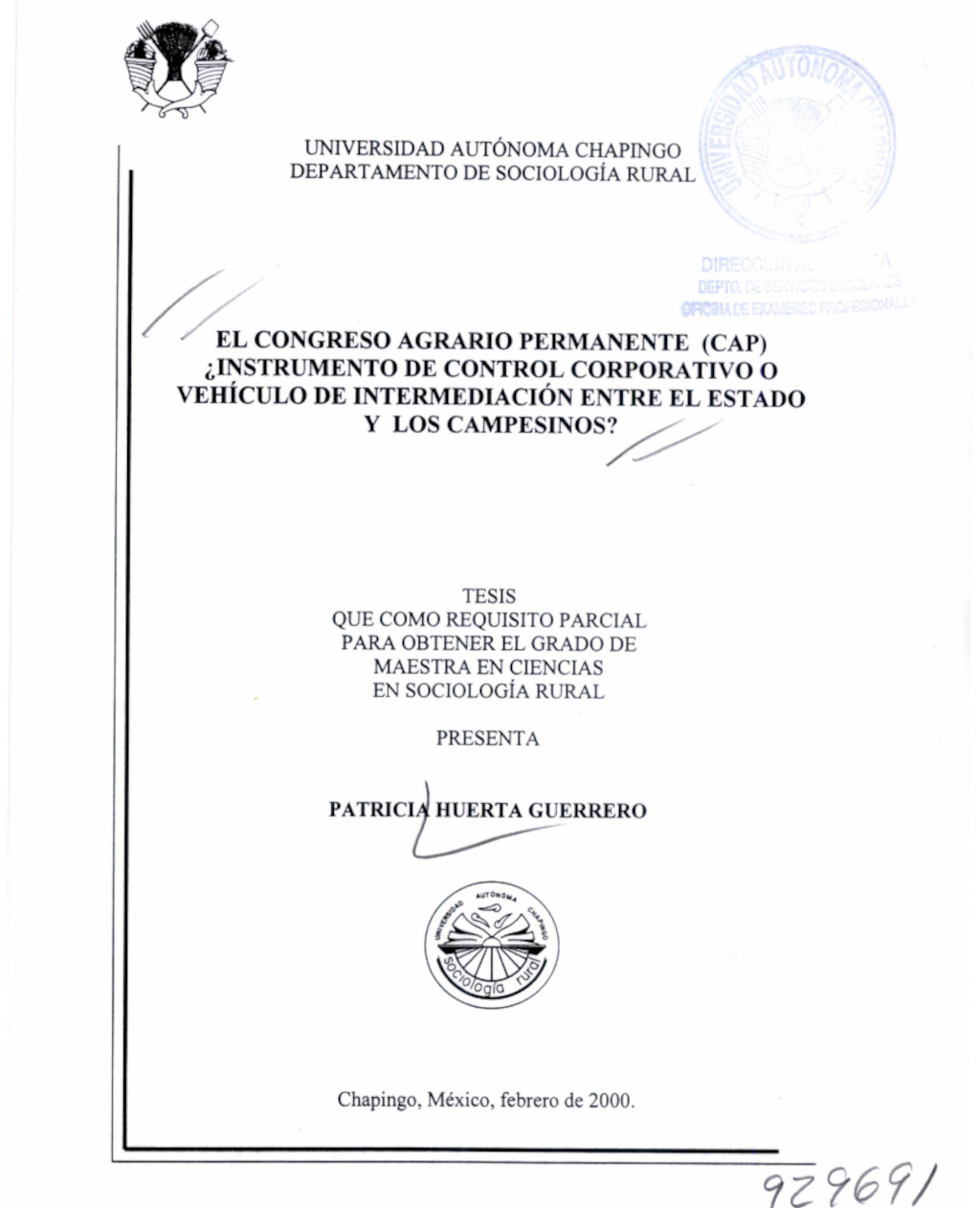 El congreso agrario permanente, (CAP) ¿Instrumento de control corporativo ó vehículo de intermediación entre el estado y los campesinos?