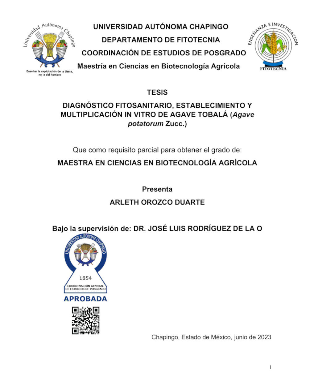 Diagnóstico fitosanitario, establecimiento y multiplicación in vitro de agave tobalá (Agave potatorum Zucc.)