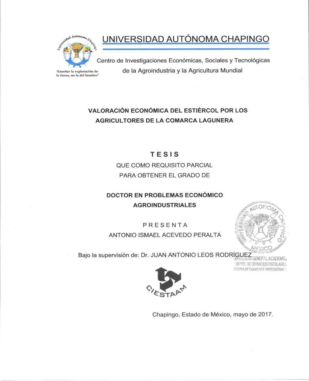 Tesis (Doctorado en Problemas Económico Agroindustriales)