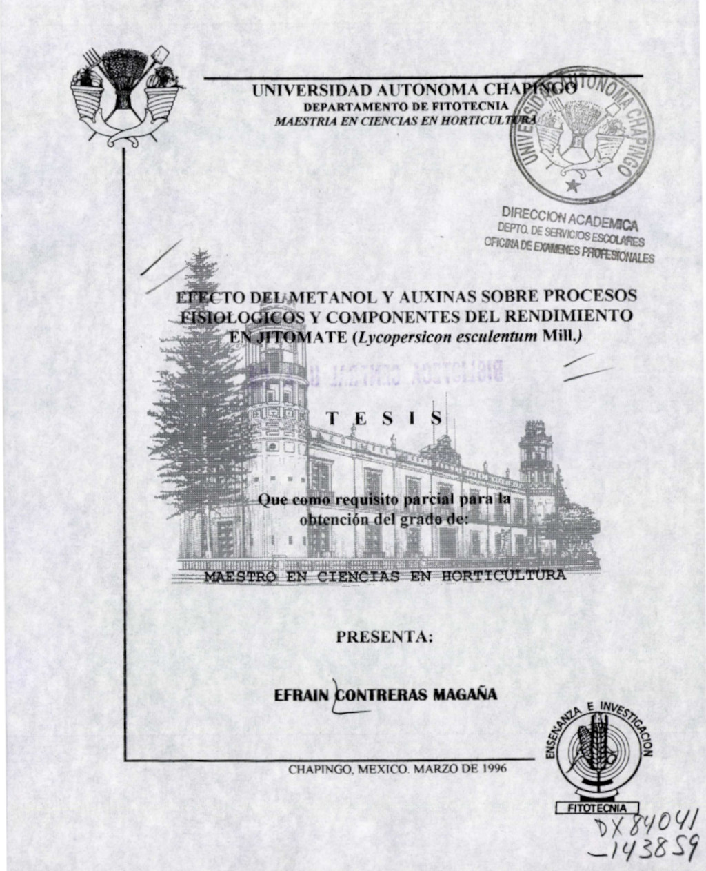 Efecto del metanol y auxinas sobre procesos fisiologicos y componentes del rendimiento en jitomate (Lycopersicon esculentum Mill.)