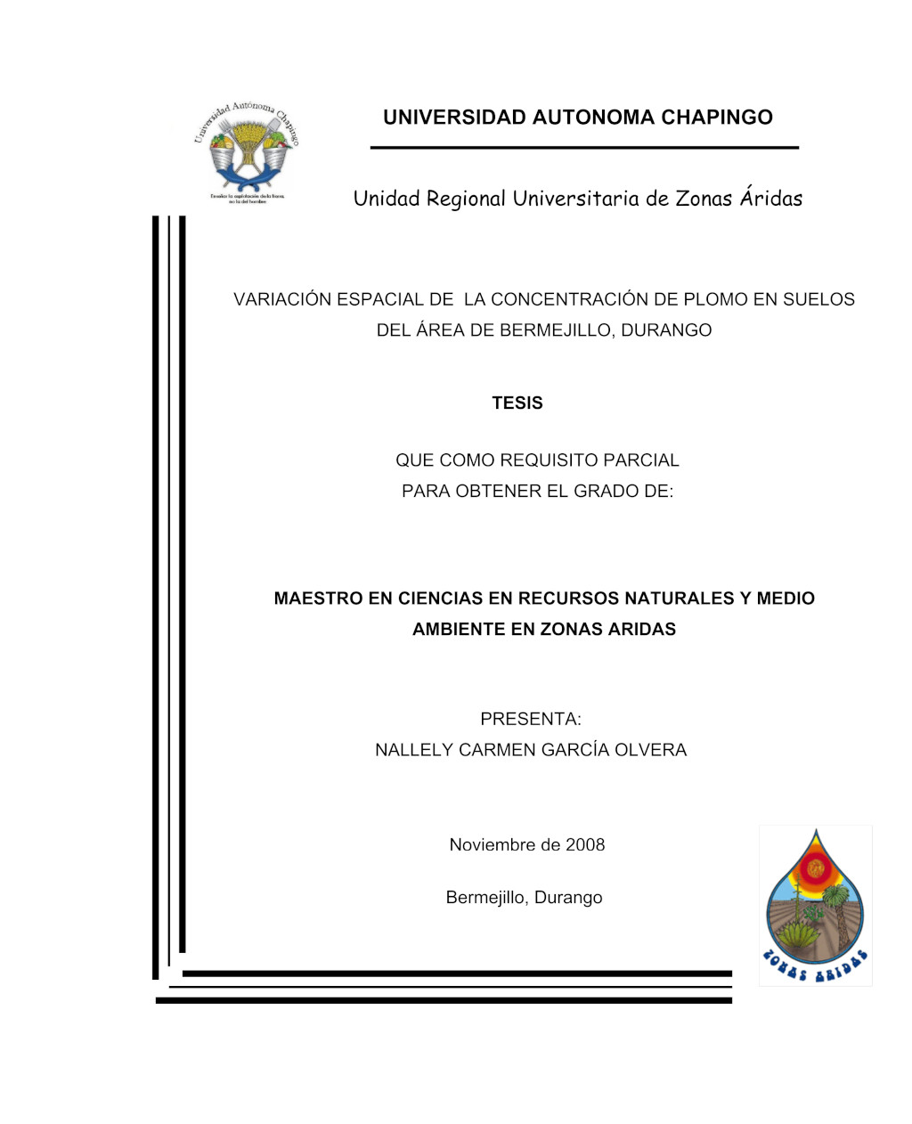 La contaminación por metales pesado en los suelos es uno de los problemas más serio de degradación ambiental, ya que estos pueden ser absorbidos por las plantas y parte de ellos traslocados a los animales y las personas en la cadena alimenticia provocando su toxicidad. En la Región Lagunera de México se ha detectado y reportado una alta contaminación con plomo en suelo y aire por las emisiones de una fundidora, situada en el centro de la ciudad de Torreón, Coahuila. Otra planta se encuentra localizada en Bermejillo, Dgo. Pocos esfuerzos se han dedicado a la evaluación de los efectos de los metales pesados en poblaciones vegetales nativas y sus efectos colaterales en el ecosistema y la diversidad genética y biológica. El objetivo del presente trabajo fueron: Evaluar los niveles de contaminación con plomo y su distribución espacial en suelos aledaños a la planta Durango metalúrgica de Bermejillo, Se identificó la distribución espacial de la concentración de plomo en suelo en un área de 49 km2 alrededor de la planta fundidora. Las concentraciones de plomo en suelo abarcaron un amplio rango desde 25 hasta 1764 ppm. La distribución espacial del plomo en suelo no tuvo una tendencia concéntrica en relación con ubicación de la planta fundidora, como se pensó al plantear el proyecto ya que las mayores concentraciones de plomo se encontraron en las proximidades de la planta fundidora y en una dirección norte sur, coincidiendo con la dirección de una sierra aledaña y la dirección de los vientos dominantes. Las concentraciones de plomo en plantas nativas evaluadas in situ se ubicaron en un rango de 8 a 823 ppm. Se identificaron al menos siete especies vegetales acumuladoras de plomo.