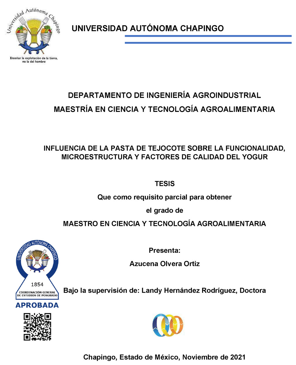 Influencia de la pasta de tejocote sobre la funcionalidad, microestructura y factores de calidad del yogurth