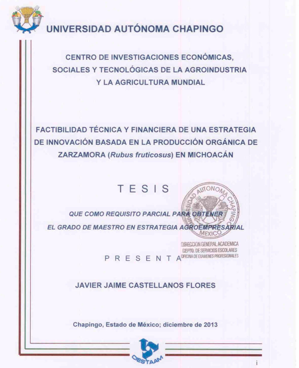 Factibilidad técnica y financiera de una estrategia de innovación basada en la producción orgánica de zarzamora (Rubus fruticosus) en Michoacán