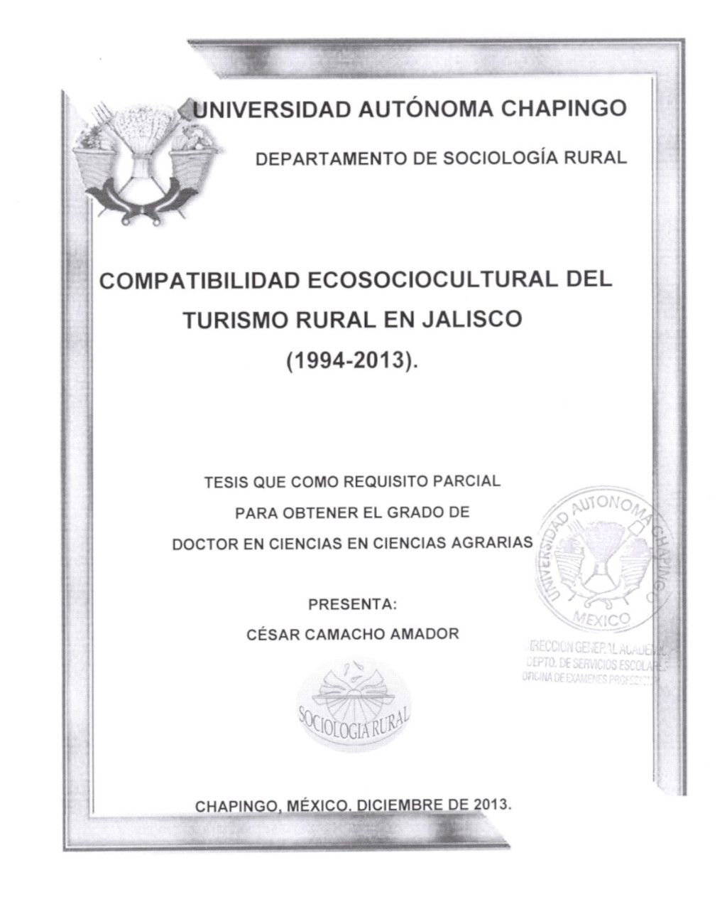 Compatibilidad ecosociocultural del turismo rural en Jalisco (1994-2013)