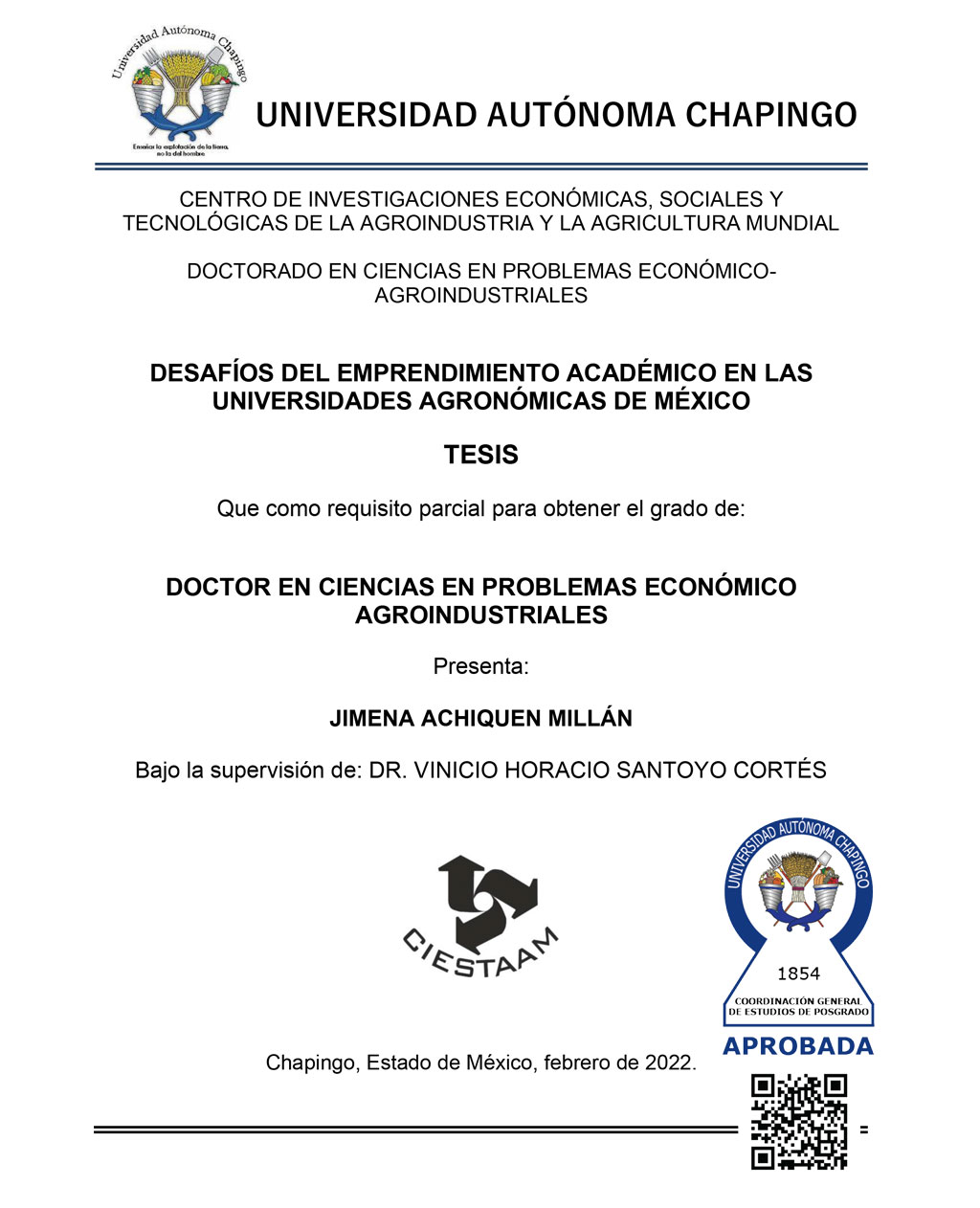 Autónoma Chapingo y el Colegio de Postgraduados; se hace énfasis en el desarrollo de