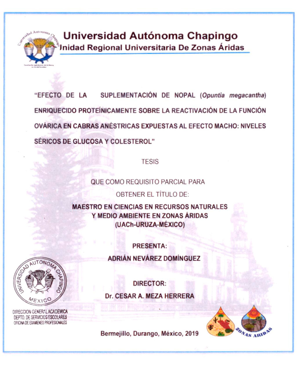 Suplementación de nopal proteicamente enriquecido y reactivación de la función ovárica en cabras anéstricas expuestas al efecto macho: niveles séricos de glucosa y colesterol