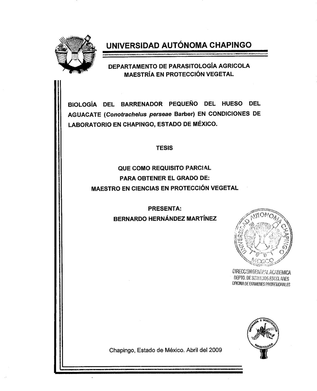 Tesis (Maestría en Ciencias en Protección Vegetal)