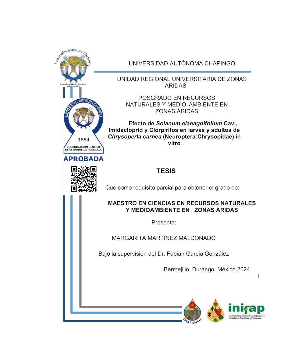 Efecto de Solanum elaeagnifolium Cav., Imidacloprid y Clorpirifos en larvas y adultos de Chrysoperla carnea (Neuroptera:Chrysopidae) in vitro