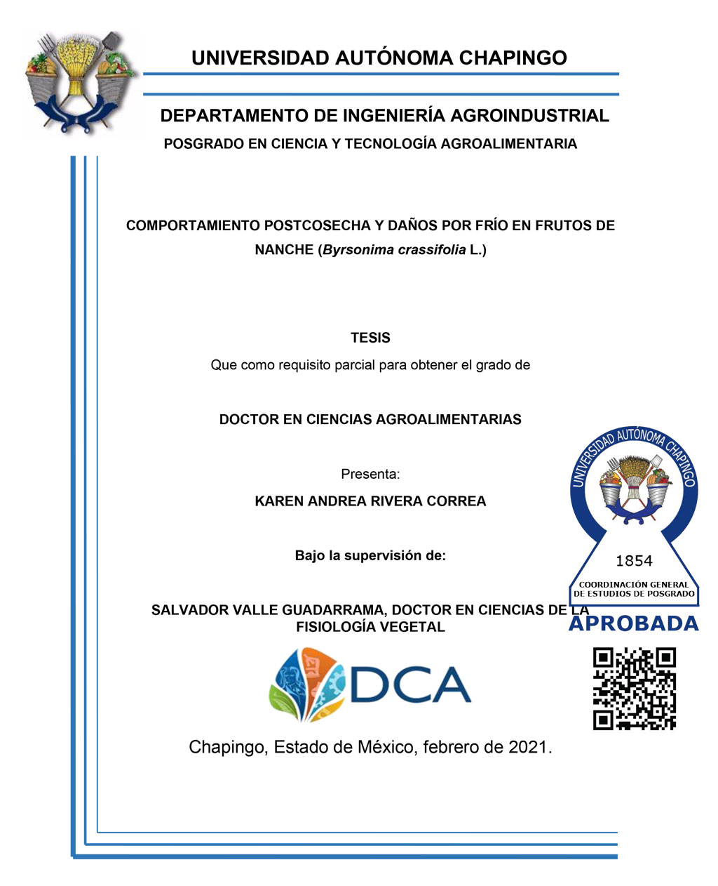 Tesis (Doctorado en Ciencias Agroalimentarias)