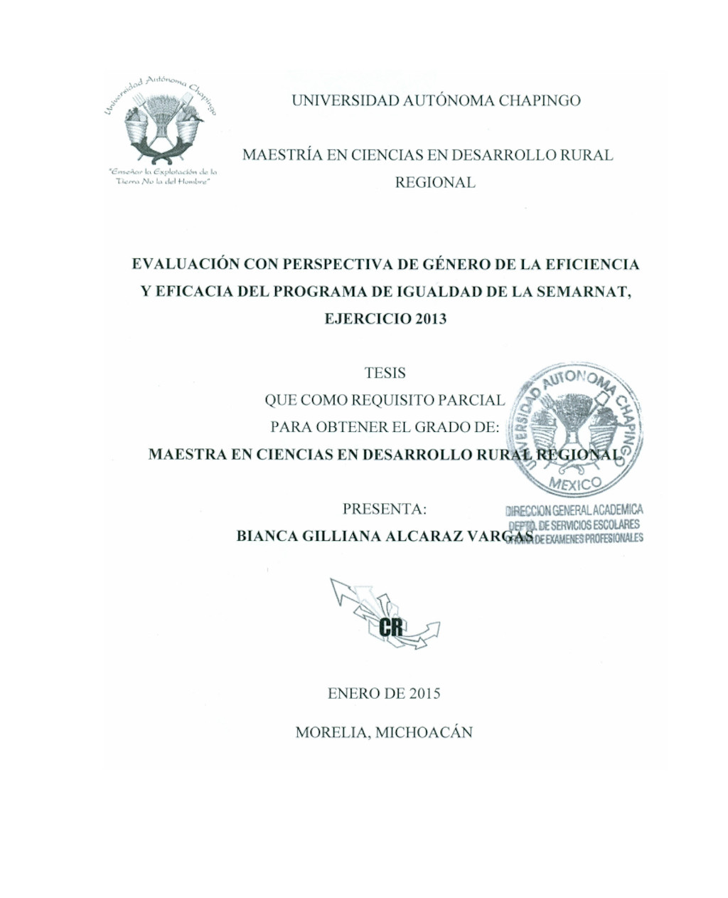 Evaluación con perspectiva de género de la eficiencia y eficacia del programa de igualdad de la SEMARNAT, ejercicio 2013