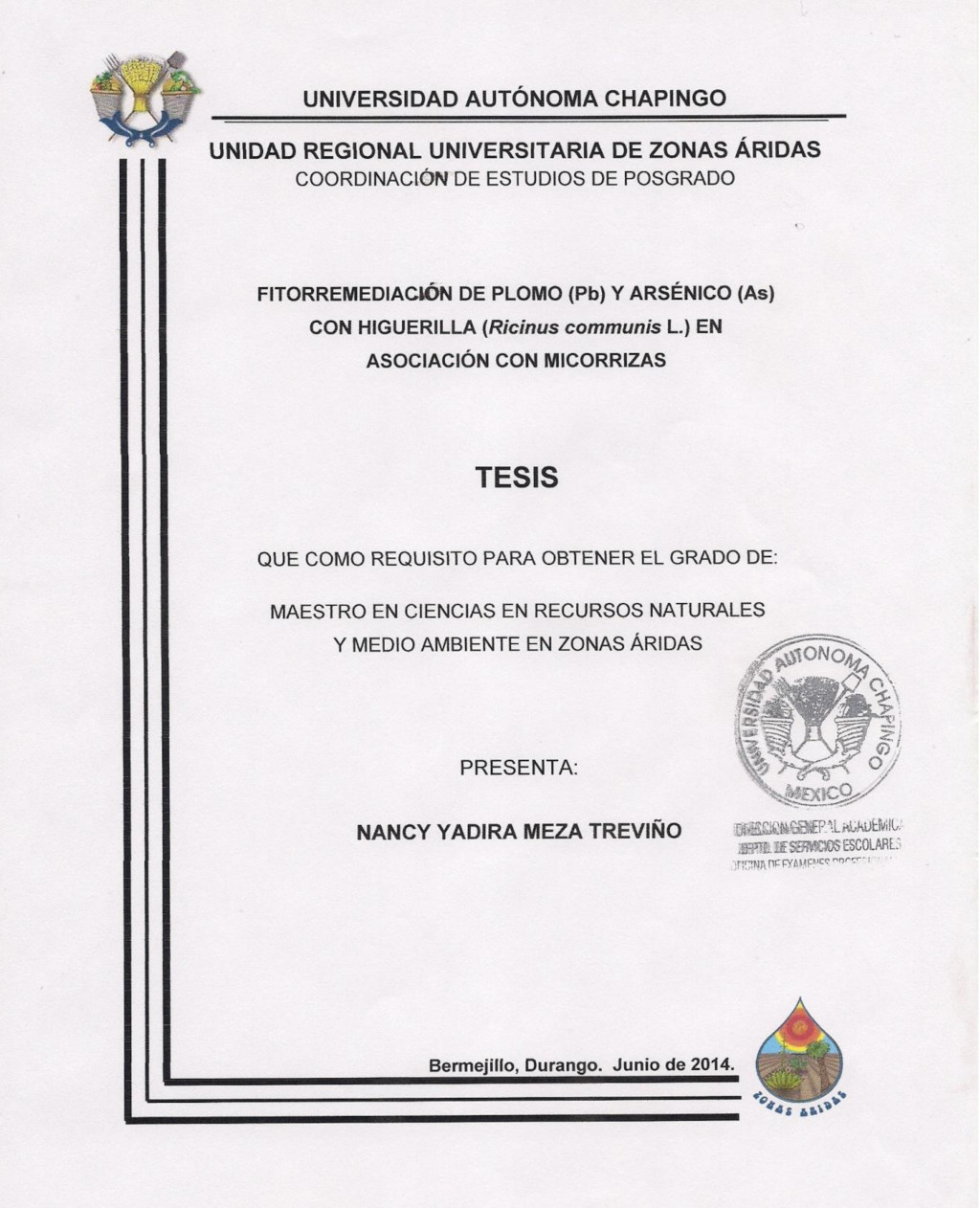 Fitorremediación de Plomo (Pb) y Arsénico (As) con higuerilla (Ricinus communis L.) en asociación con micorrizas