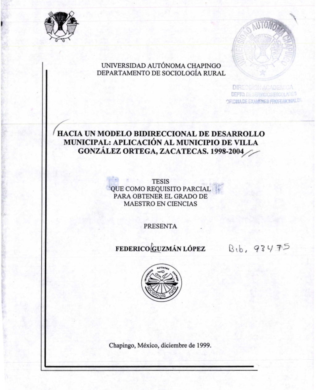 Hacia un modelo bidireccional de desarrollo municipal: Aplicación al Municipio de Villa González Ortega, Zacatecas.1998-2004