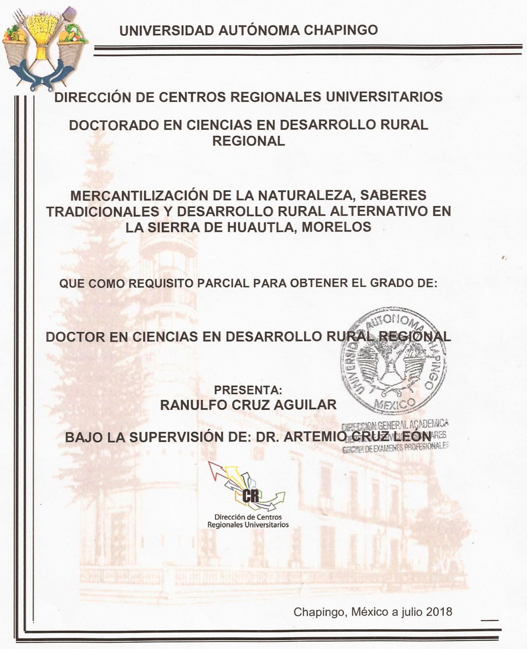 Tesis (Doctorado en Ciencias en Desarrollo Rural Regional)
