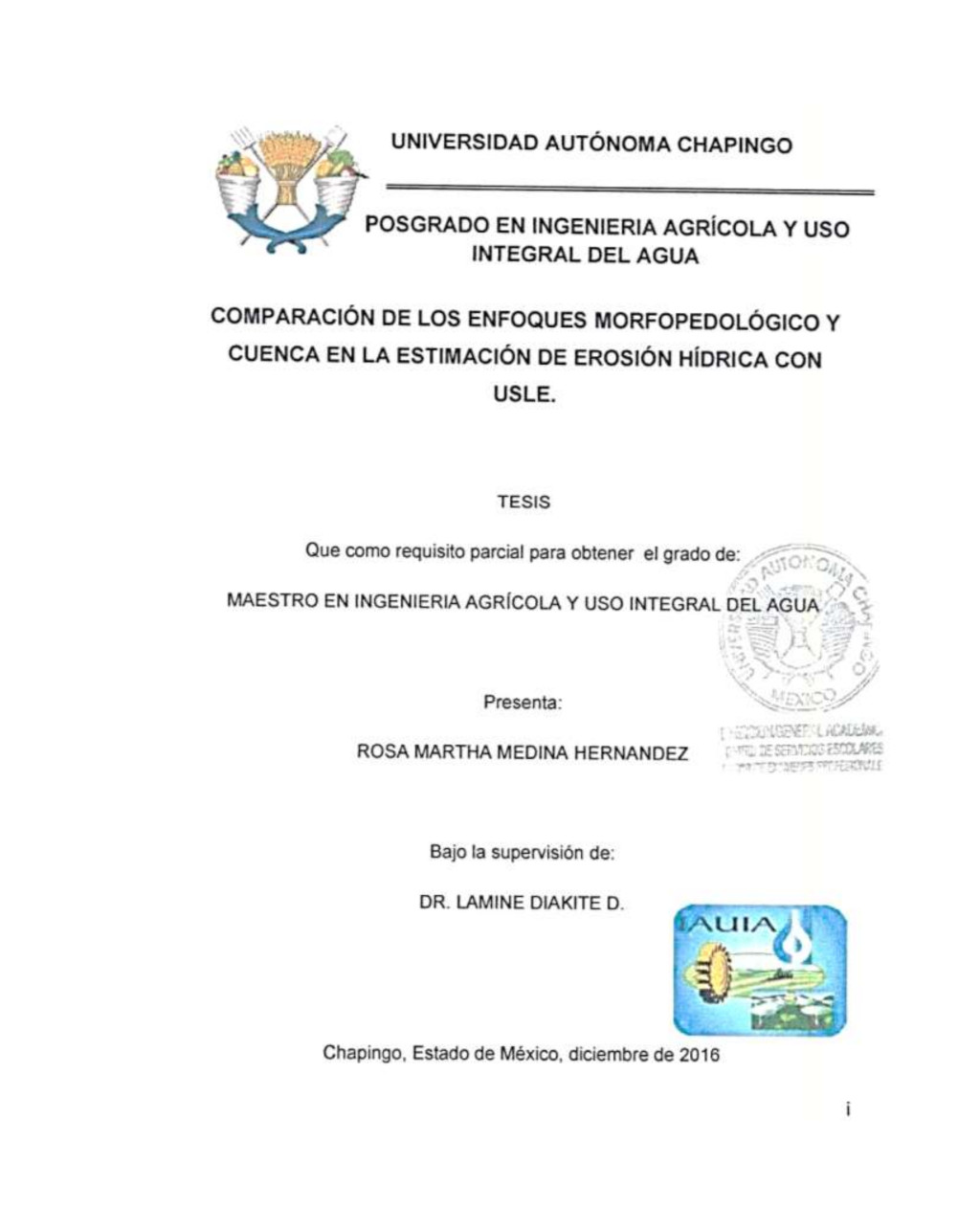 Tesis (Maestría en Ingeniería Agrícola y Uso Integral del Agua)