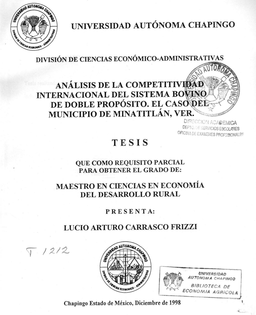 Análisis de la competitividad internacional del sistema bovino de doble propósito. El caso del municipio de Minatitlán, Ver.