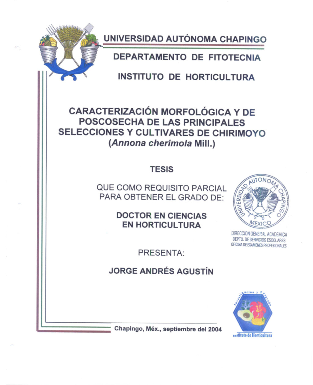 Caracterización morfológica y de poscosecha de las principales selecciones y cultivares de chirimoyo (annona cherimola Mill.)