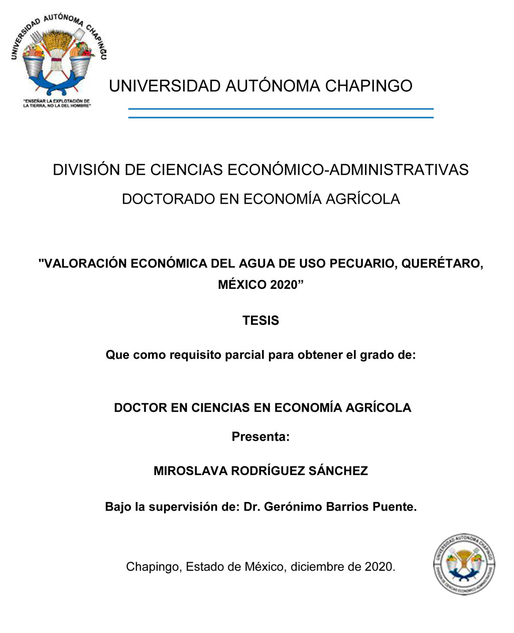 Valoración económica del agua de uso pecuario, Querétaro, México 2020