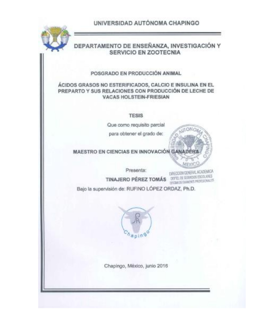 Ácidos grasos no esterificados, calcio e insulina en el preparto y sus relaciones con producción de leche de vacas Holstein-Friesian
