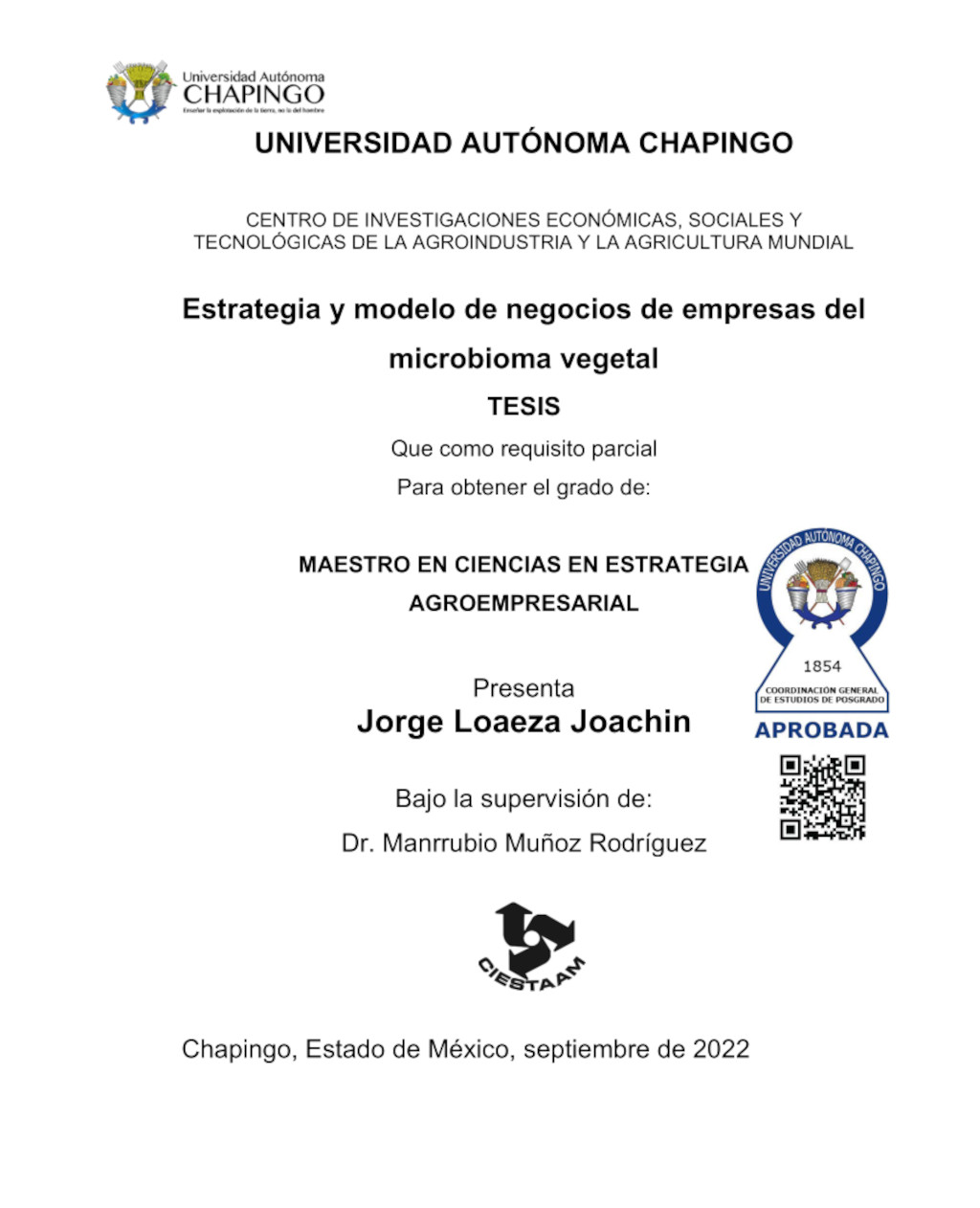 Tesis (Maestría en Ciencias en Estrategia Agroempresarial)