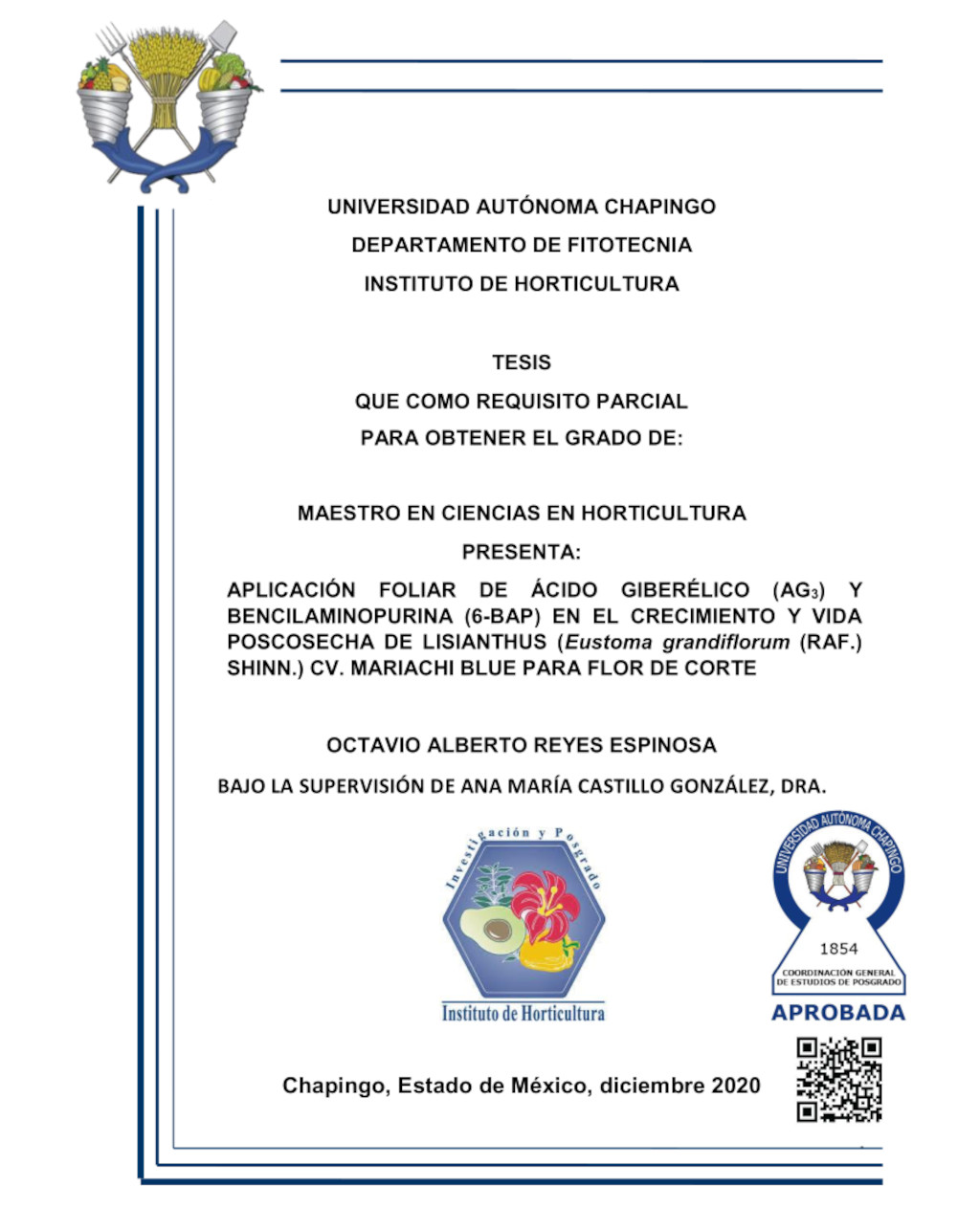 Aplicación foliar de ácido giberélico (AG3) y bencilaminopurina (6-BAP) en el crecimiento y vida poscosecha de lisianthus (Eustoma grandiflorum (RAF.) SHINN.) CV. Mariachi blue para flor de corte