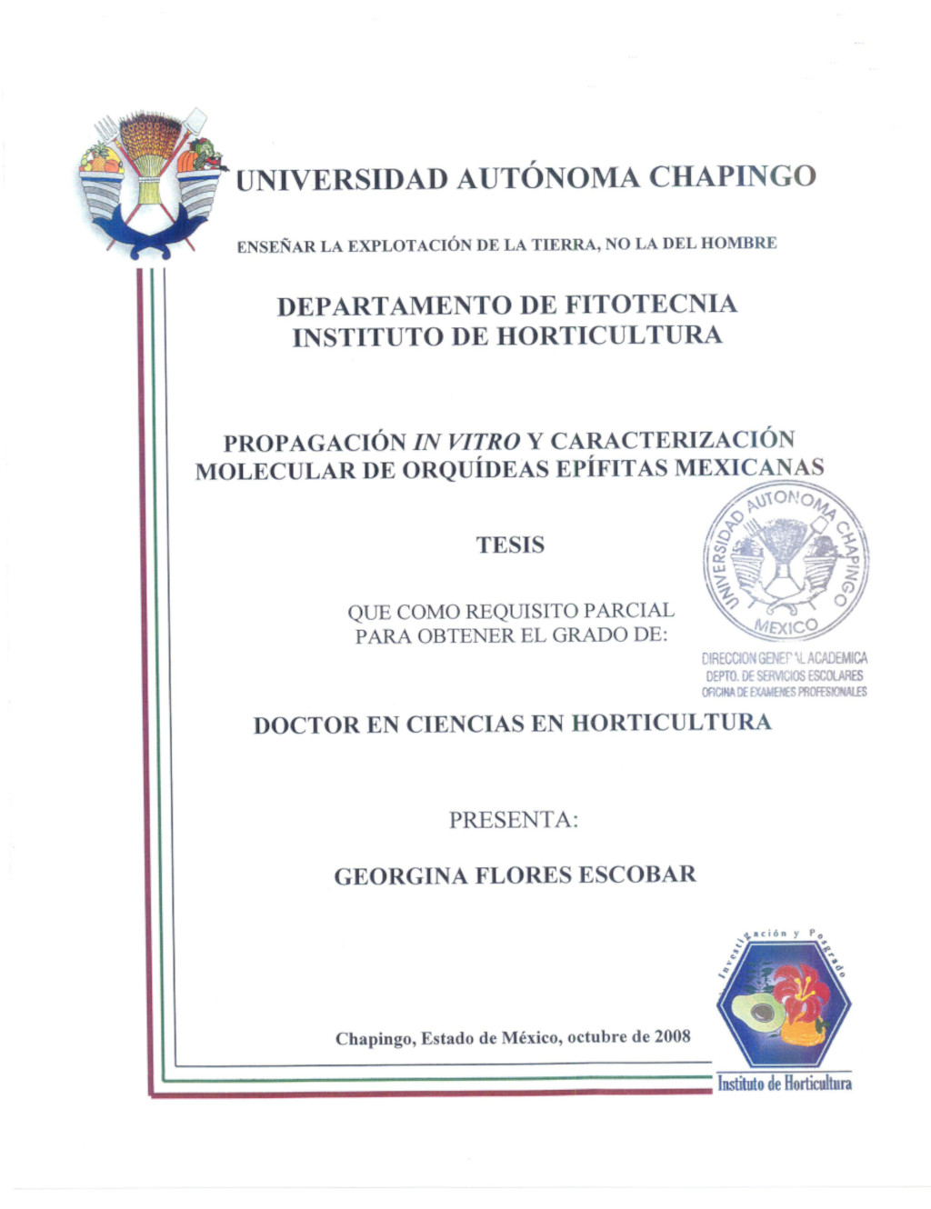 Tesis (Doctorado en Ciencias en Horticultura)