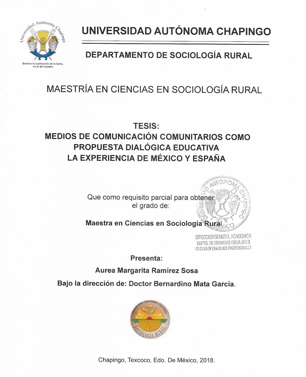 Tesis (Maestría en Ciencias en Sociología Rural)