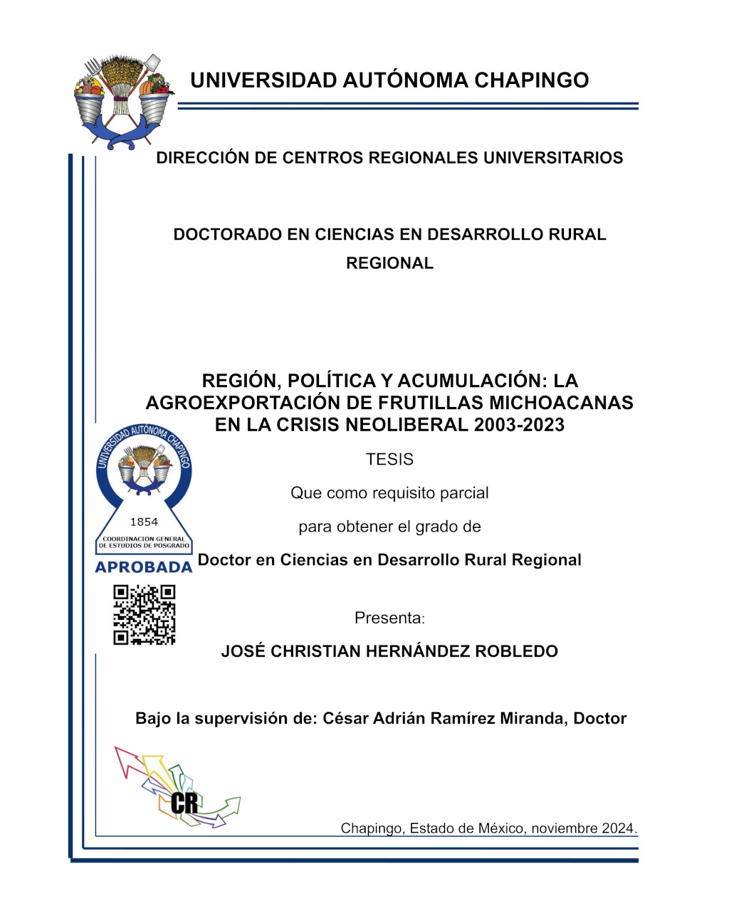 Tesis (Doctorado en Ciencias en Desarrollo Rural Regional)