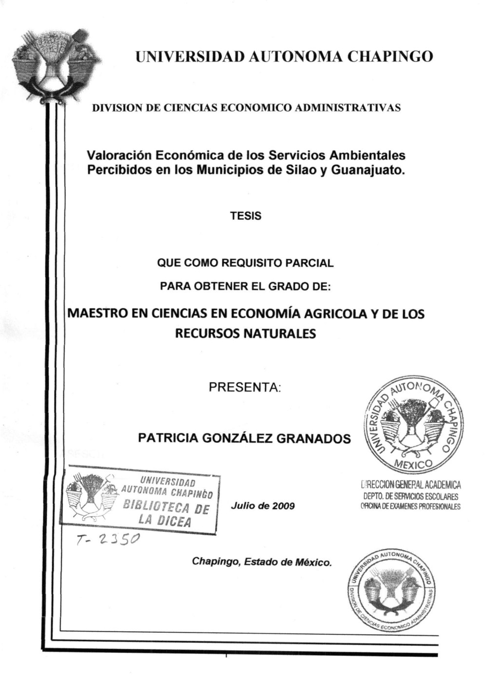 Valoración económica de los servicios ambientales percibidos en los municipios de Silao y Guanajuato