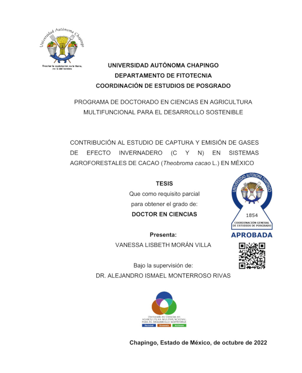 Contribución al estudio de captura y emisión de gases de efecto invernadero ( C y N) en sistemas agroforestales de cacao (Theobroma cacao L.) en México