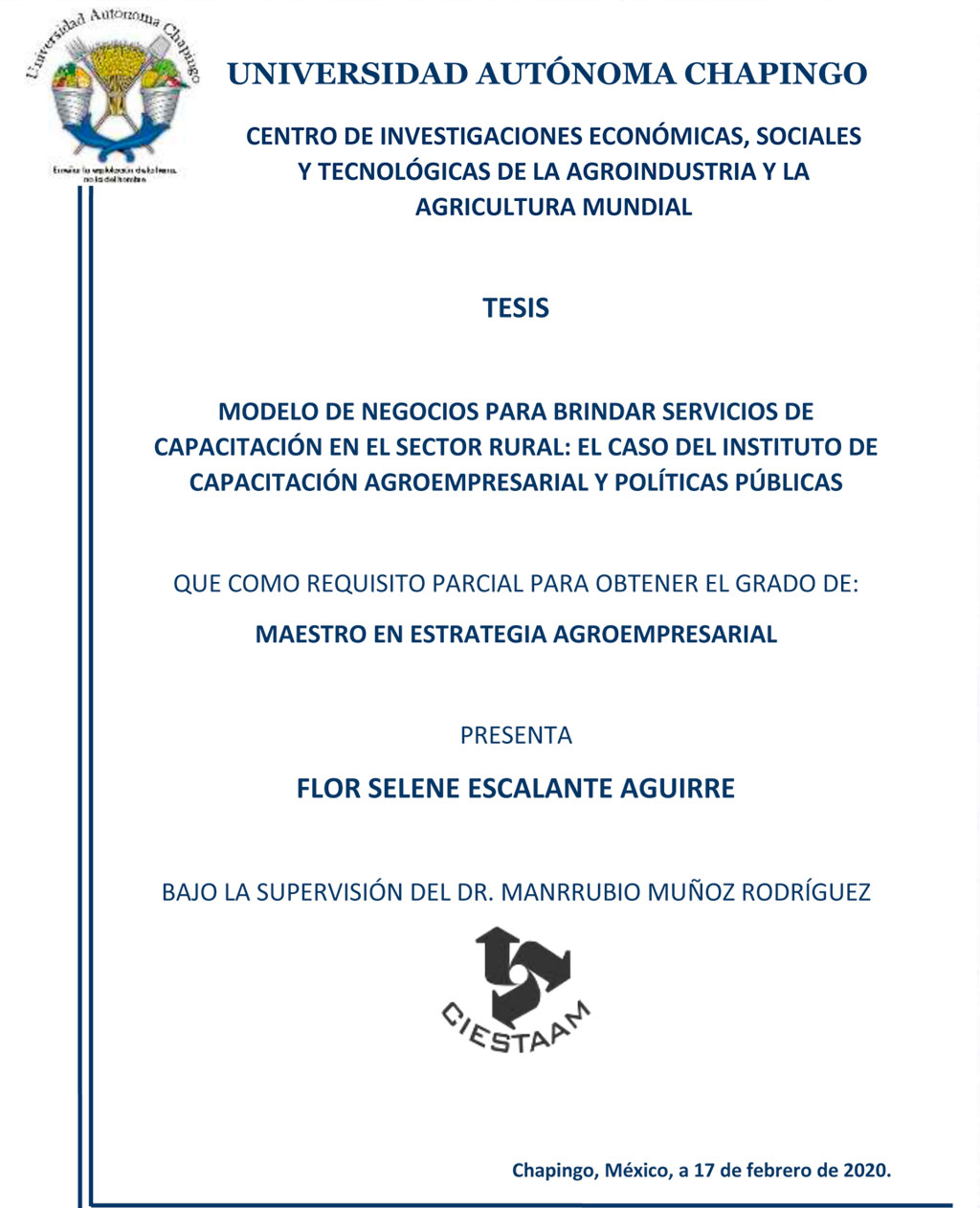 Modelo de negocios para brindar servicios se capacitación en el sector rural: el caso del instituto de capacitación agroempresarial y políticas públicas
