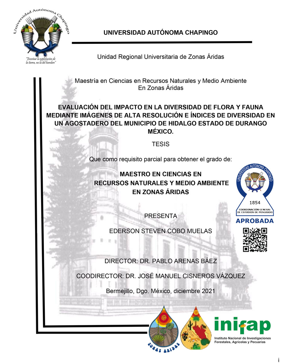 Evaluación del impacto en la diversidad de flora y fauna mediante imágenes de alta resolución e índices de diversidad en un agostadero del municipio de Hidalgo Estado de Durango México
