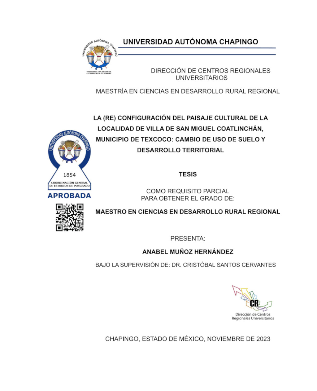 La (re) configuración del paisaje cultural de la localidad de Villa de San Miguel Coatlinchán, municipio de Texcoco: cambio de uso de suelo y desarrollo territorial