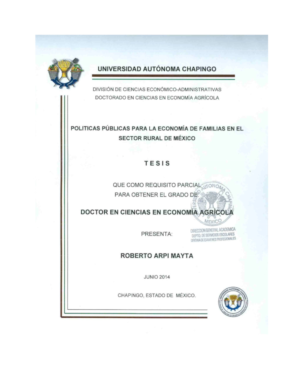dc.description | Tesis (Doctorado en Ciencias en Economía Agrícola) | |