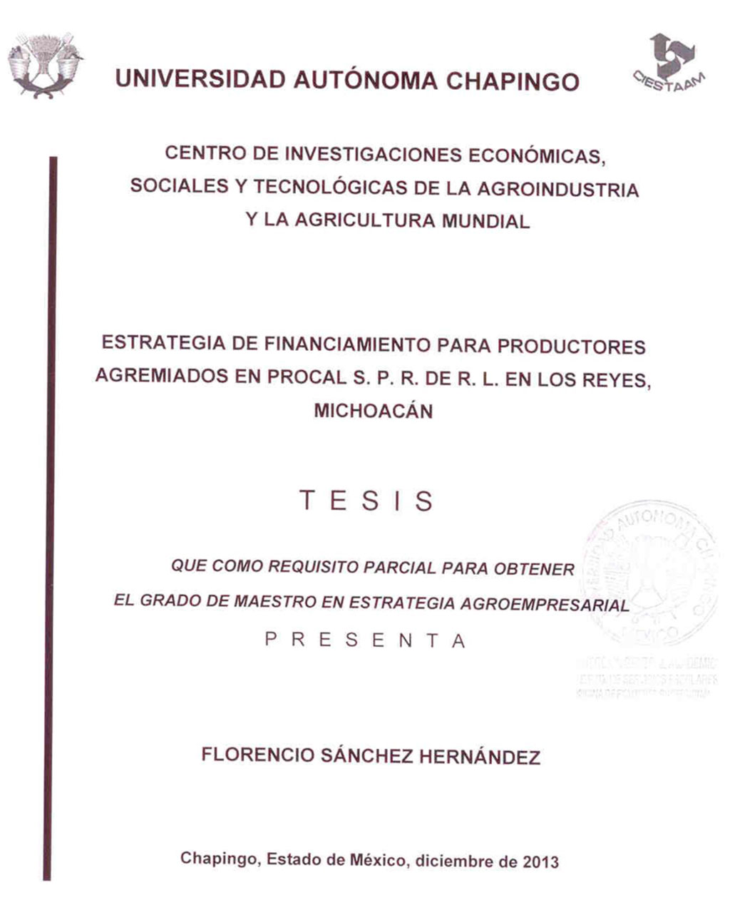 Tesis (Maestría en Estrategia Agroempresarial)