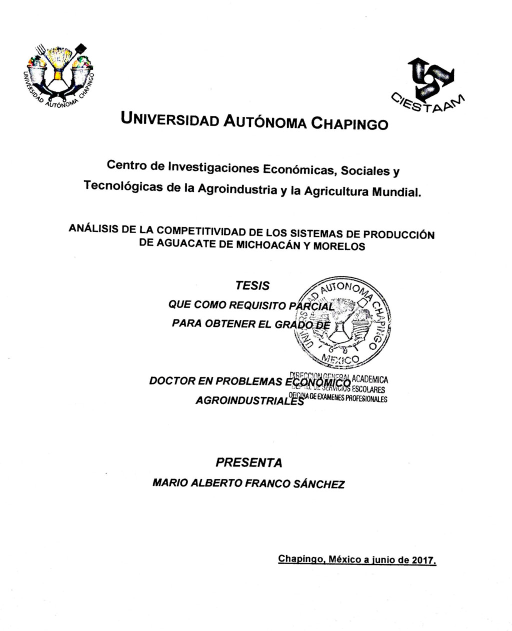 Análisis de la competitividad de los sistemas de producción de aguacate de Michoacán y Morelos