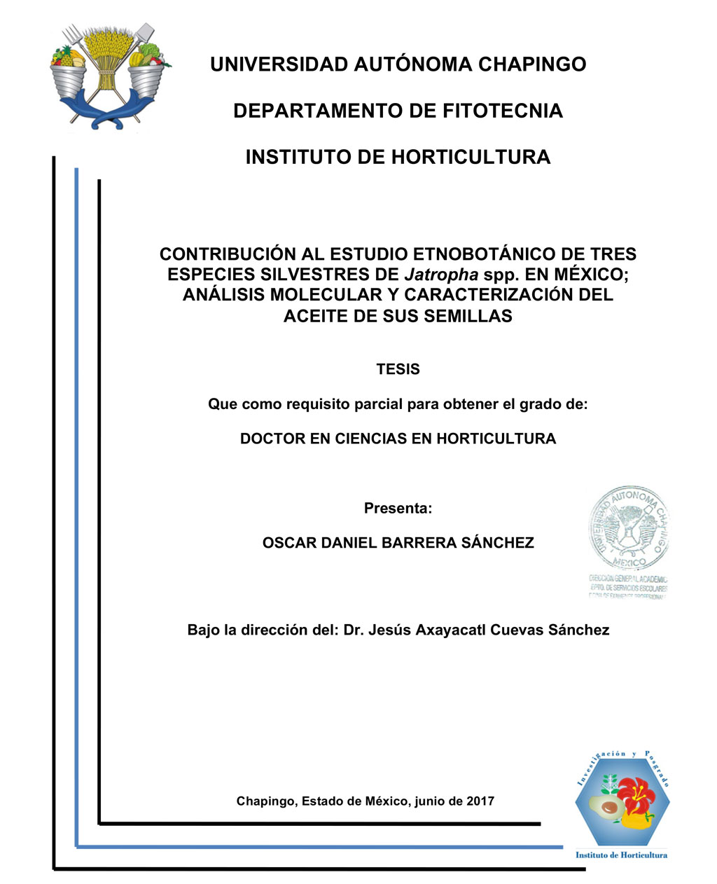 Contribución al estudio etnobotánico de tres especies silvestres de Jatropha spp. en México; análisis molecular y caracterización del aceite de sus semillas