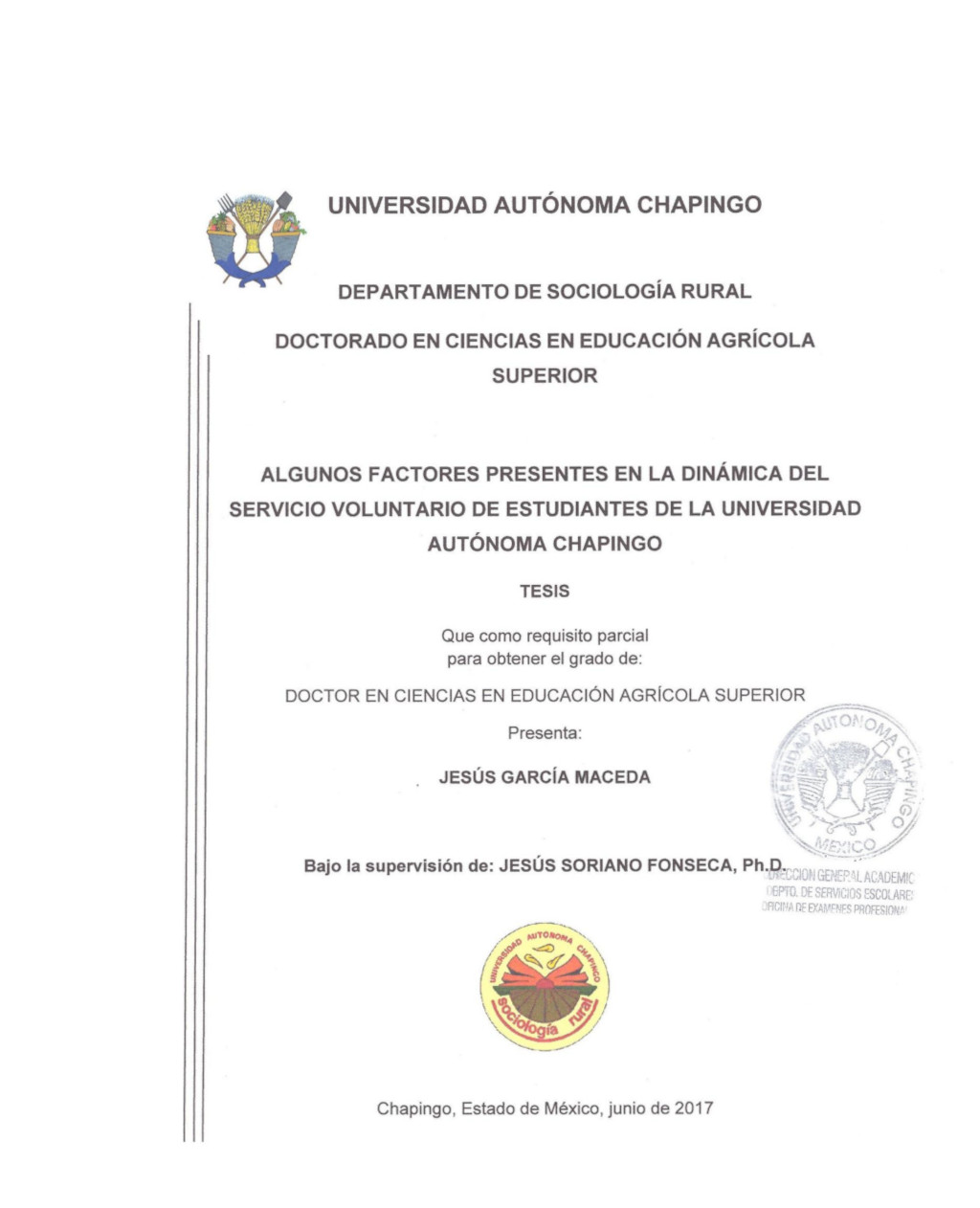 Algunos factores presentes en la dinámica del servicio voluntario de estudiantes de la Universidad Autónoma Chapingo