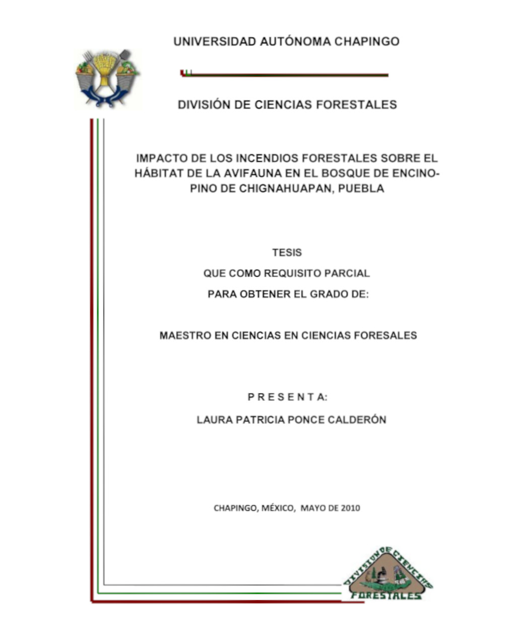 Impacto de los incendios forestales sobre el hábitat de la avifauna en un bosque de encino-pino de Chignahuapan, Puebla