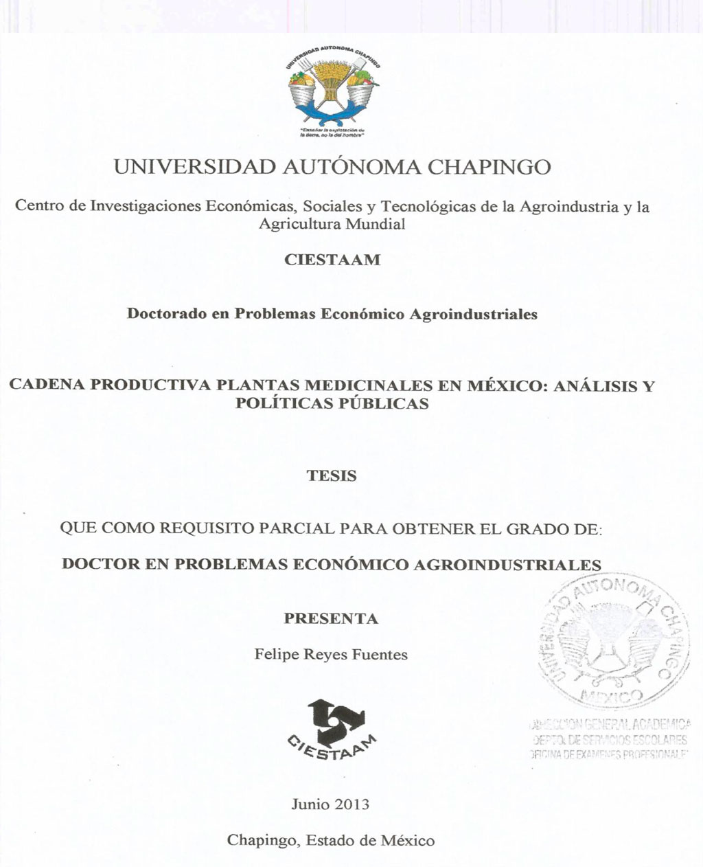 Tesis (Doctorado en Problemas Económico Agroindustriales)